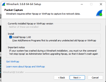 如果你选择某些旧版本安装,请务必勾选 Install Npcap。