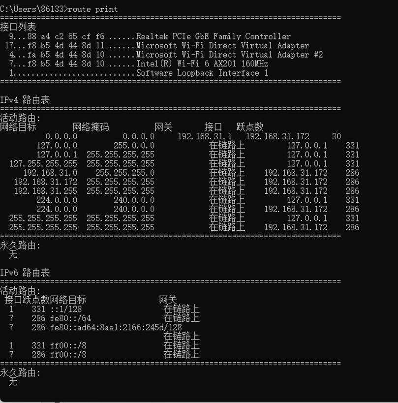 route add操作可能会报错:“请求时操作需要提升”,需要以管理员身份打开cmd或powershell。- 部分电脑输入